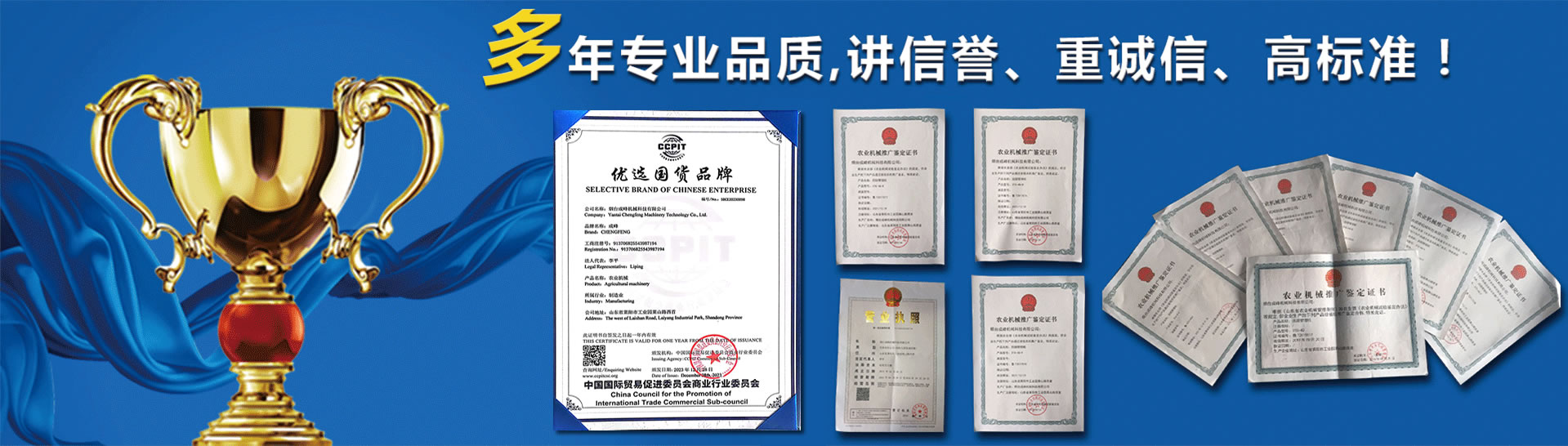 點擊進入>煙臺成峰機械科技有限公司,成立于2010年4月,是農林機械專業(yè)生產廠 家。十余年專注果園管理機械、大棚機械的研發(fā)、生產與銷售。產品暢 銷全國三十一個省市、自治區(qū),60%的產品出口歐、美、日、韓等多個國家。高新技術企業(yè),有經驗豐富的產品研發(fā)團隊,有十款產品通過國家農機推廣鑒定,享有國家農機補貼。公司現有激光切割機械、機器人焊 接、數控加工設備、表面處理設備數十臺,具備萬臺以上農林機械的生 產能力。目前我們與山東農業(yè)大學,山東科技大學等多所高校達成產學研合作, 與山東農機研究院、農科院等多家科研單位達成產品研發(fā)合作,為傳統農機的智能化賦能插上翅膀。我們遵循誠信、創(chuàng)新、合作、共贏的經營理念,在可持續(xù)發(fā)展的道路上 穩(wěn)步前行。 查看詳情>